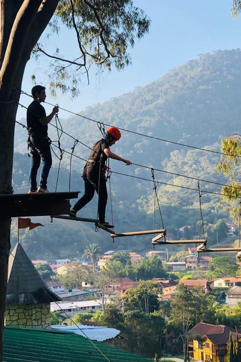 Pra você que curte uma aventura, aqui no Le Canton são diversas atividades radicais! Dentre elas temos o Arvorismo! Consiste na travessia de um percurso suspenso entre plataformas montadas na copa das árvores.
