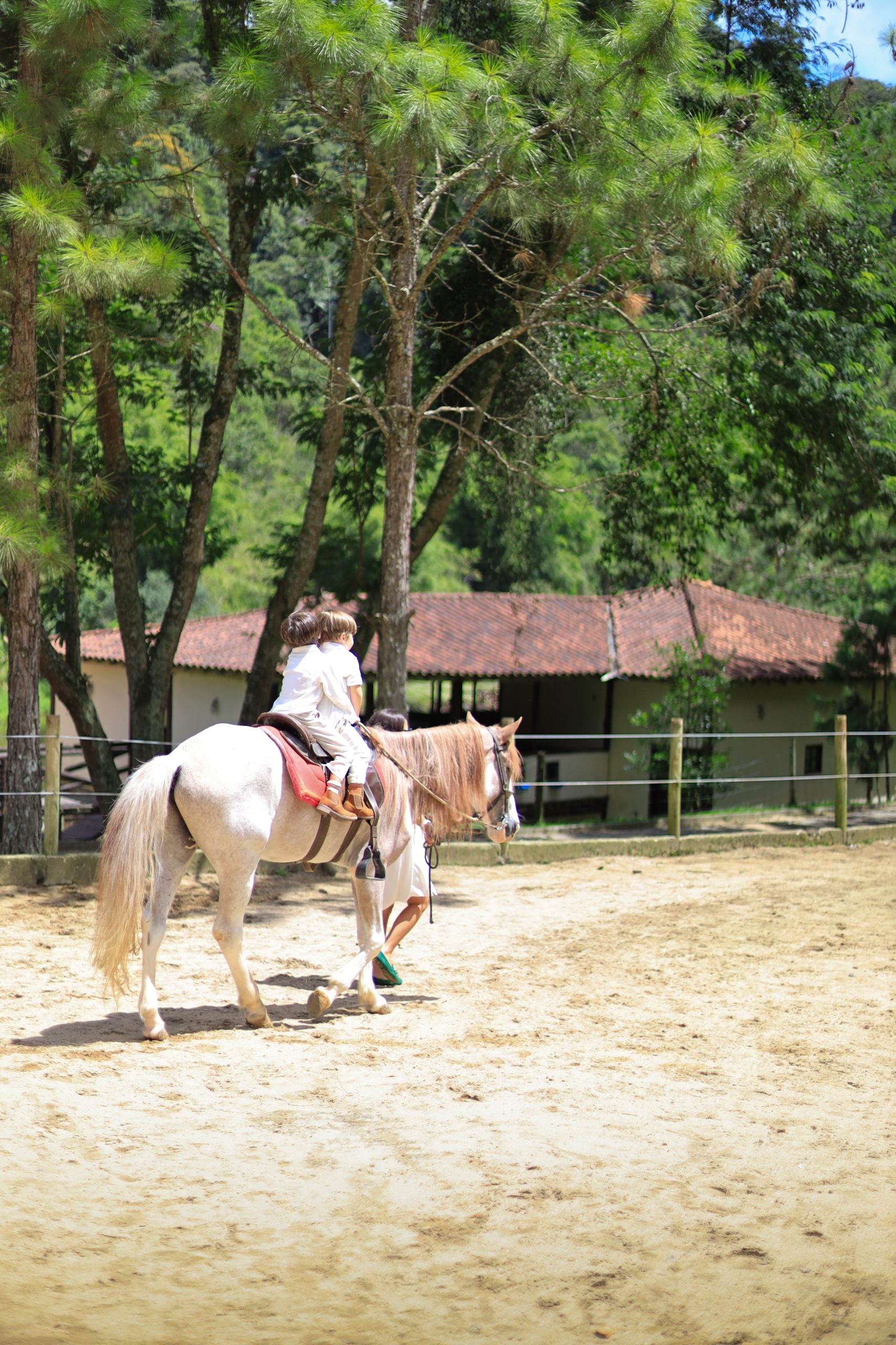 Aproveite sua estadia conosco para fazer um passeio a cavalo! Todos os animais são bem treinados e mansos proporcionando agradáveis e divertidos passeios, sempre acompanhados por um guia.