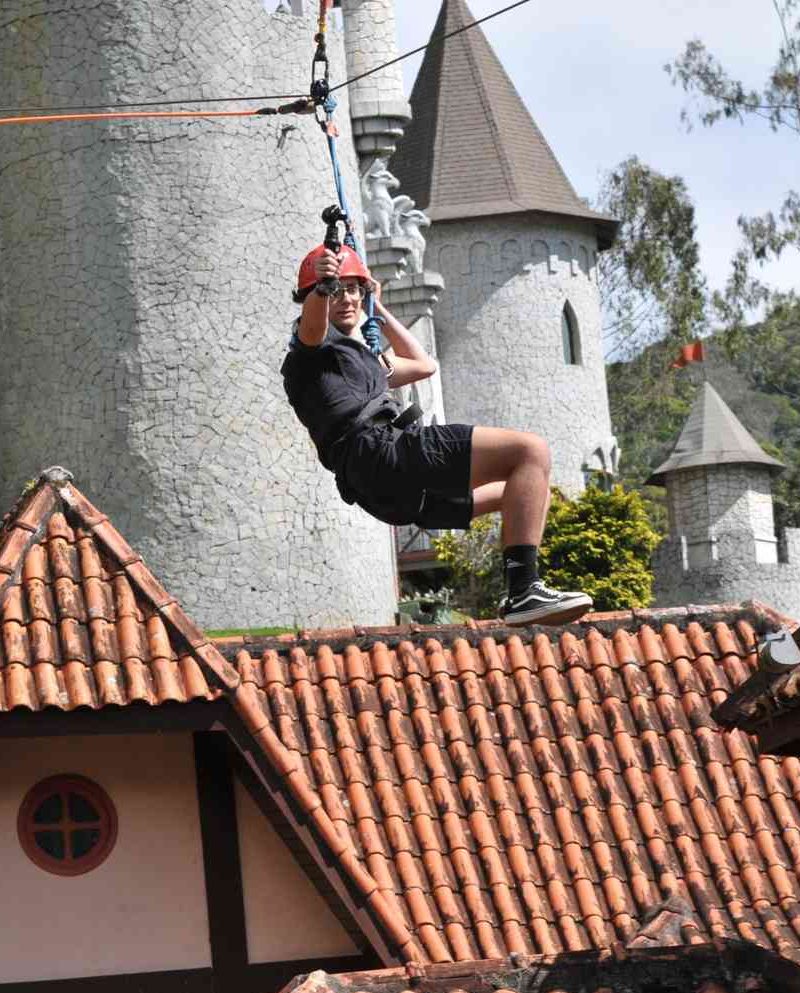 Muita aventura aqui no Le Canton! Mais uma atividade radical, uma descida com muita adrenalina na tirolesa! E se não fechar os olhos com medo ainda pode aproveitar a vista incrível lá de cima!